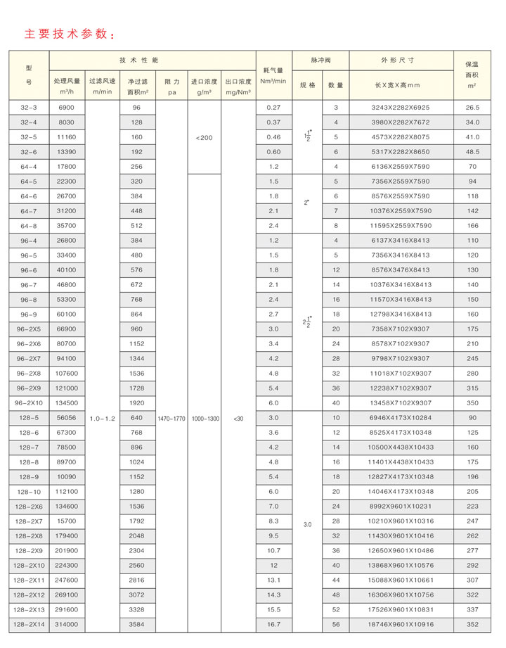 結(jié)構(gòu)特點(diǎn) 采用分室、箱式結(jié)構(gòu)、脈沖閥用量少、壽命長,采用進(jìn)口脈沖閥動(dòng)作可達(dá)100萬次以上,并實(shí)現(xiàn)了不停機(jī)檢修。 外濾式,采用大口徑脈沖閥,高壓、小氣量脈沖清灰清灰強(qiáng)度高,需壓縮空氣(0.5一0.7Mpa)。 分室隔離清灰一離線清灰,清灰徹底、效果好,減少二次揚(yáng)塵,阻力小、能耗低,濾袋平均壽命可達(dá)兩年以上。 換袋及檢修在頂部進(jìn)行、干凈、方便、快捷。 程序控制器采用單片機(jī)或PLC控制,具有運(yùn)行穩(wěn)定可靠,抗干擾性強(qiáng)等特點(diǎn)。PLC控制器可根據(jù)用戶要求配置,設(shè)計(jì)成具有與其它可分編程控制器以上位機(jī)聯(lián)網(wǎng)功能。 系列化設(shè)計(jì),多種規(guī)格可滿足不同現(xiàn)場情況的處理需要。 設(shè)備總體結(jié)構(gòu)緊湊合理,占地面積小。